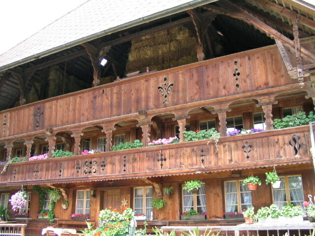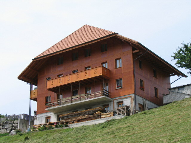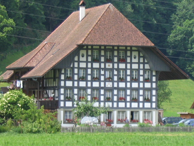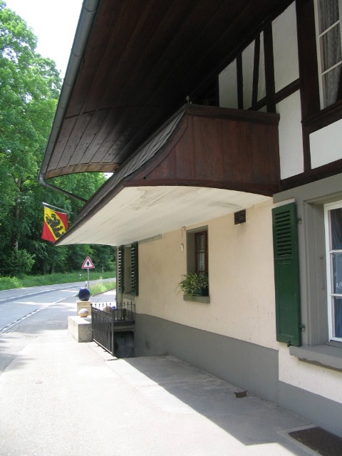 A house uphill from the Emmenmatt station, with a sort of strange quality, mostly, I think, because of the ruddy, glossy finish of its walls.
