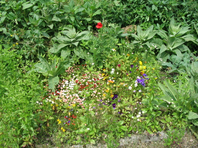 A lovely little diverse patch of flowers near the station.