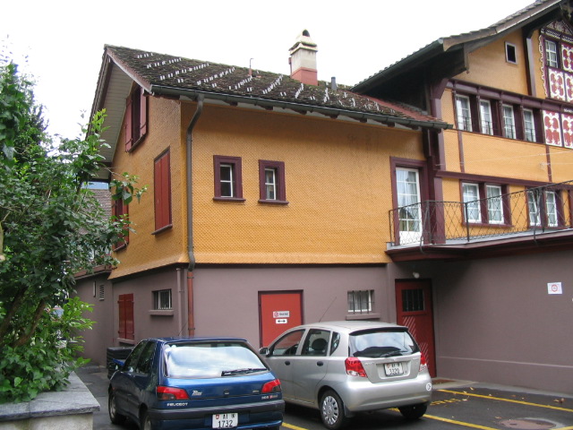 40. House on a small plot of land in the town of Appenzell. Note the projecting wall on the left.