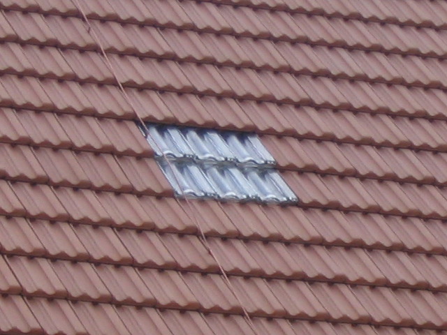 Another unusual and innovative kind of skylight is integrated glass roof tiles, which I saw in multiple areas: