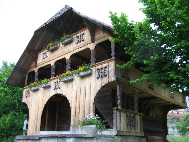 As one might expect, although there is strong architectural unity in the Emmental, exceptions do exist. The picture below shows a house in Langnau that is Blockbau and looks almost entirely non-Emmentaler. It appears to be very old, given the condition (dark and slightly graying) of the wood. I would love to know about this house's origins. I'd never guess without prior knowledge that it was an Emmentaler building.