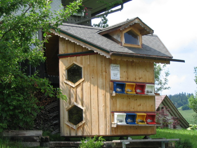 As is also true in the Diemtigtal, colorful and whimsical apiaries (beehouses) can often be found on farms: