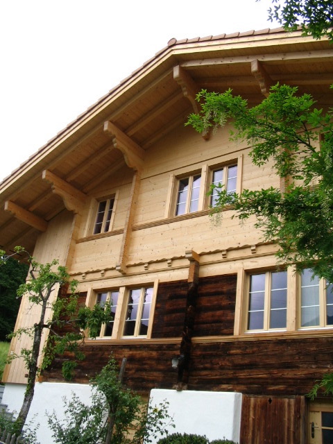 This area was my first destination; it's home to Hofstetten and the Ballenberg Museum. The area, hugging the upper Aare River and the Brienzersee, is close to the heart of the Bernese Oberland and shows this in its architecture. The Blockbau chalet is the standard style here, similar to the Lötschental. Houses and farmhouses tend, however, to be wider and often more ornamented than their Valais equivalents: